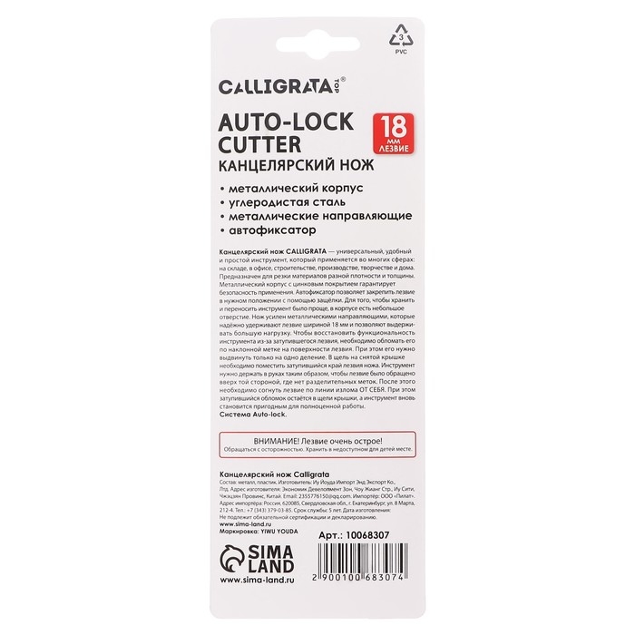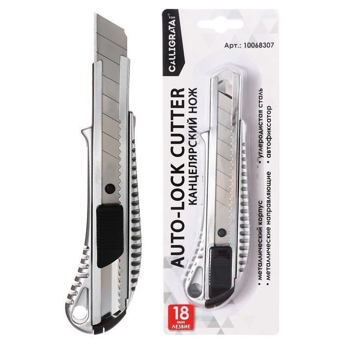 Нож канцелярский 18мм, металлический, автофиксатор, Zinc-alloy, TOP