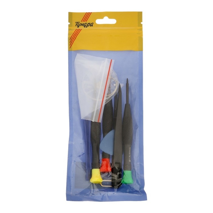 Набор для ремонта телефонов ТУНДРА, отвертки PH00, P0.8, TW0.6 + инструменты, 8 шт.