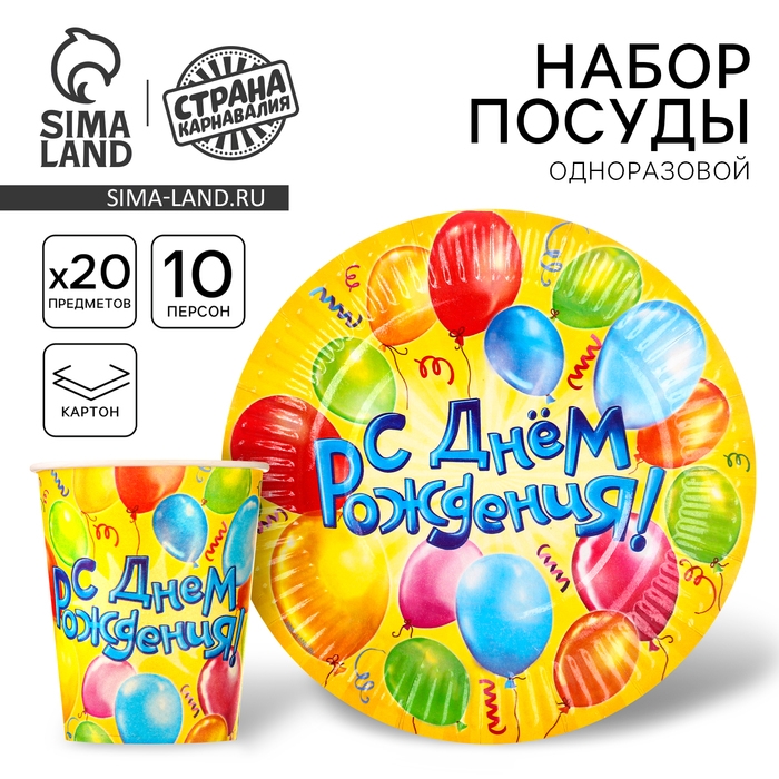 Набор бумажной посуды одноразовый "Воздушные шары", 10 стаканов, 10 тарелок