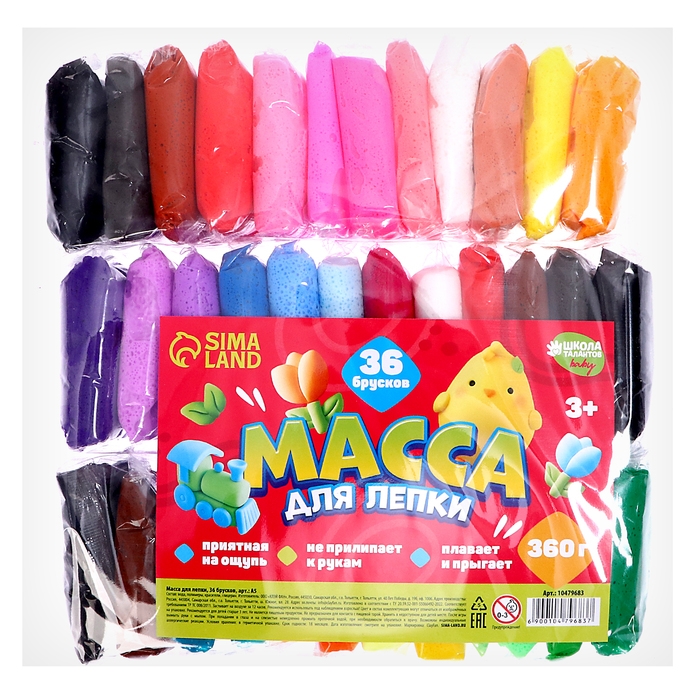 Большой набор «Масса для лепки», 36 цветов по 10 гр