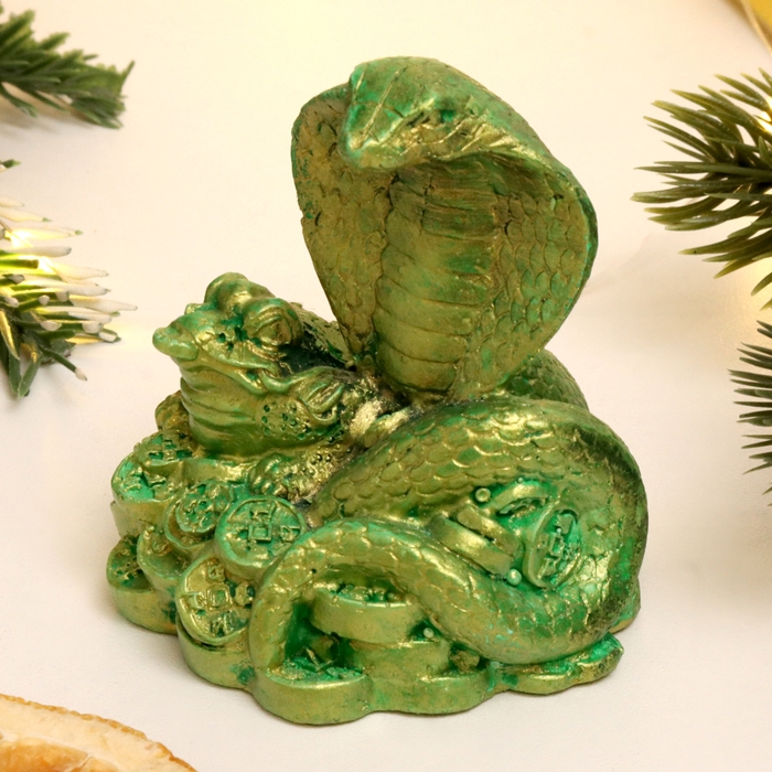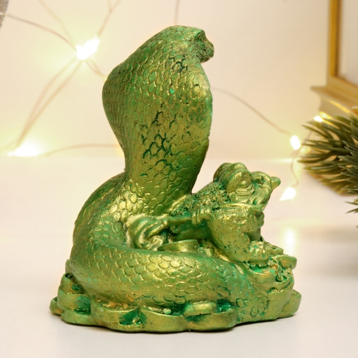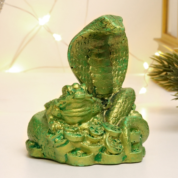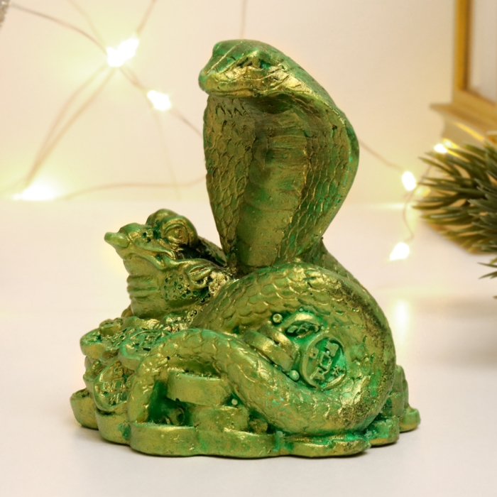 Новый год. Символ 2025. Фигура "Змея с лягушкой" зеленый с позолотой, 8х6х6см