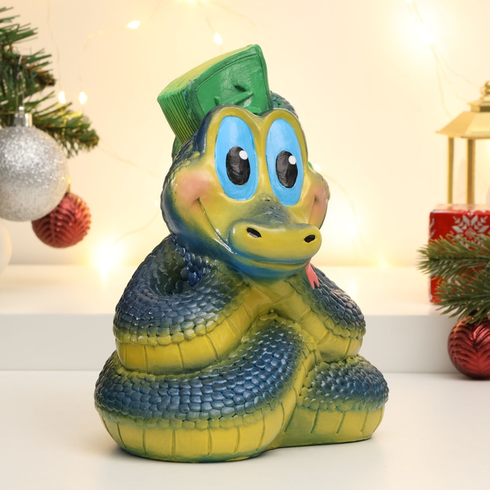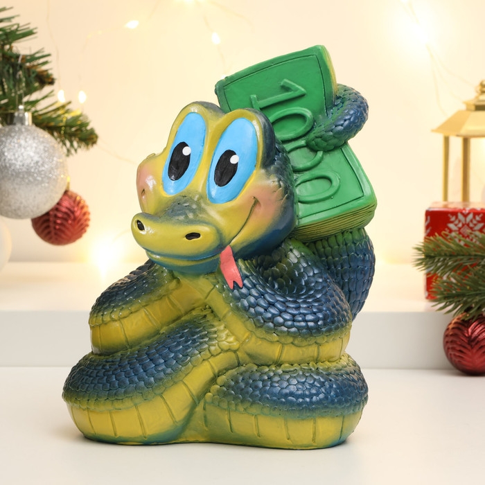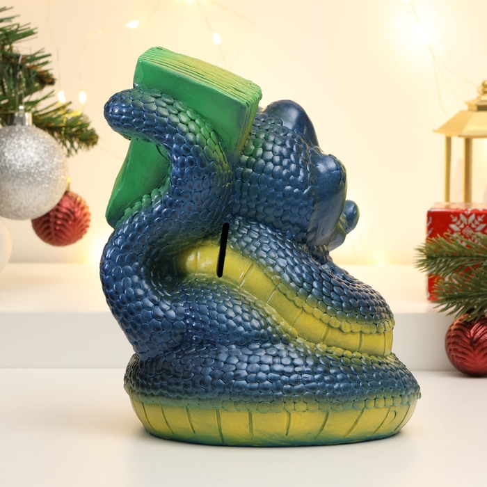 Новый год. Символ 2025. Копилка "Змея с пачкой денег" синяя, 20см