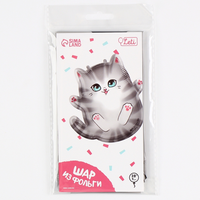 Воздушный шар фольгированный 28" «Серый котик», с подложкой