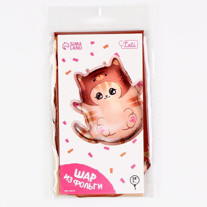 Воздушный шар фольгированный 28" «Котик в шапке», с подложкой