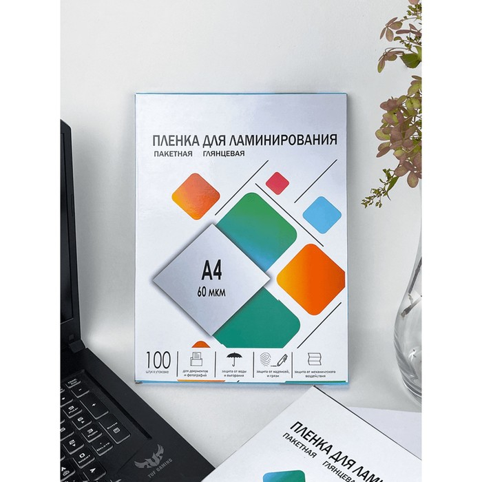 Пленка для ламинирования A4 216х303 мм, 100 мкм, 100 штук, глянцевые, Гелеос