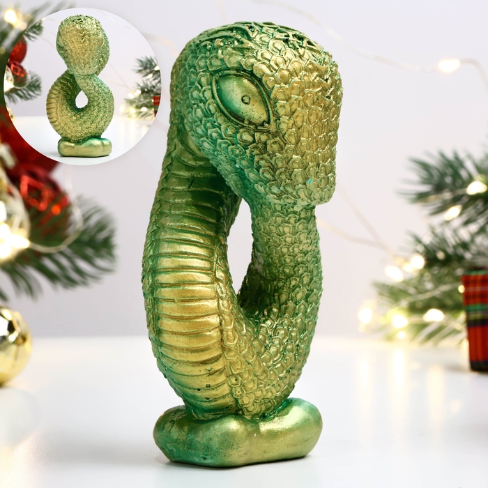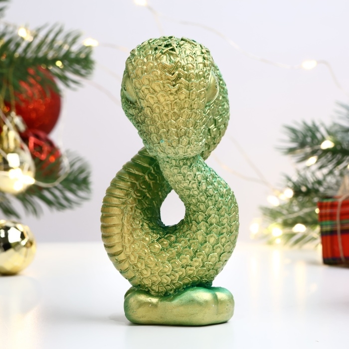 Новый год. Символ 2025. Фигура "Змея Кронос" светло-зеленая, 10х5см