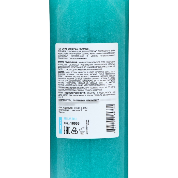 Гель-скраб для душа Milv "COOKIES", 700 мл
