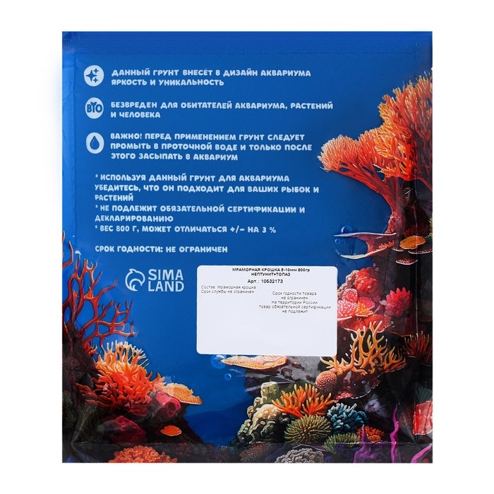 Используя мраморную крошку, вы можете не беспокоиться о здоровье обитателей аквариума.