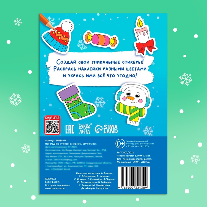 Новый год! Стикеры-раскраска, 150 наклеек, карманный формат