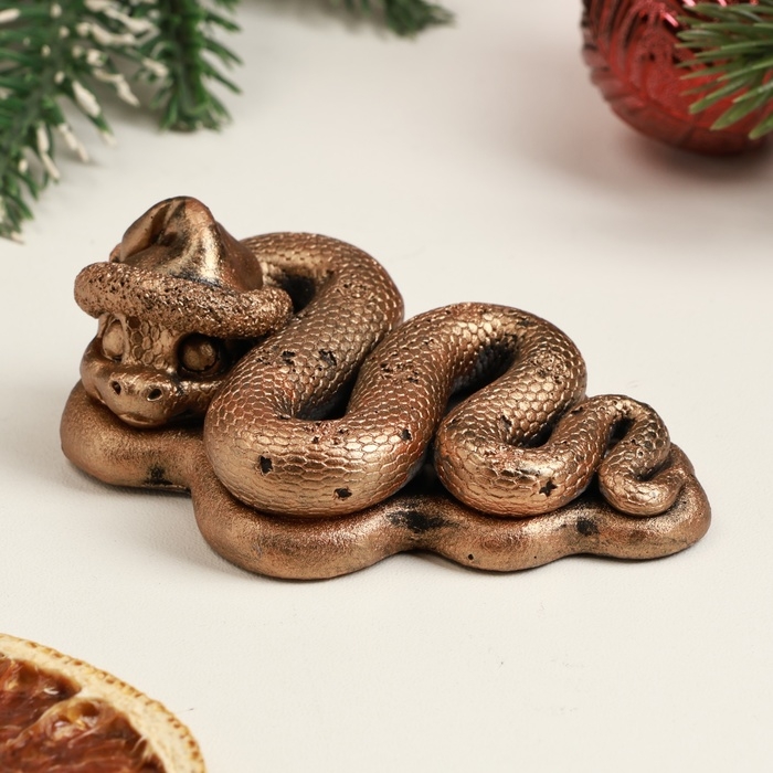 Новый год. Символ 2025. Фигура "Змея в колпаке" бронза, 8,5 х 6 х 3 см