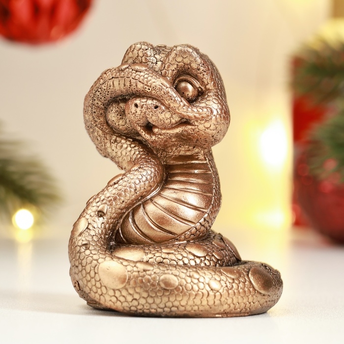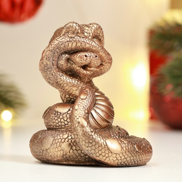 Новый год. Символ 2025. Фигура "Змея подглядывает" бронза, 5,5 х 6,5 см