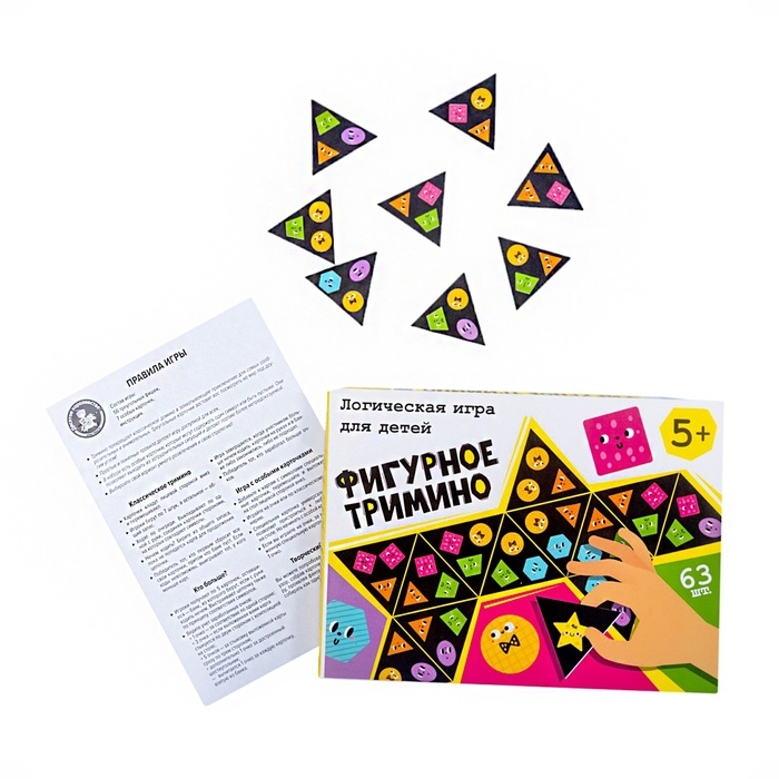 Логическая настольная игра для детей «Фигурное тримино» - это захватывающее приключение для самых внимательных и сообразительных. Тримино - аналог домино с фишками треугольной формы. Логическая настольная игра для детей «Фигурное тримино» развивает аналитическое мышление, логику и память. В наборе есть карточки с изображением разноцветных геометрических фигур.