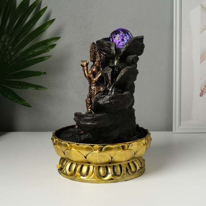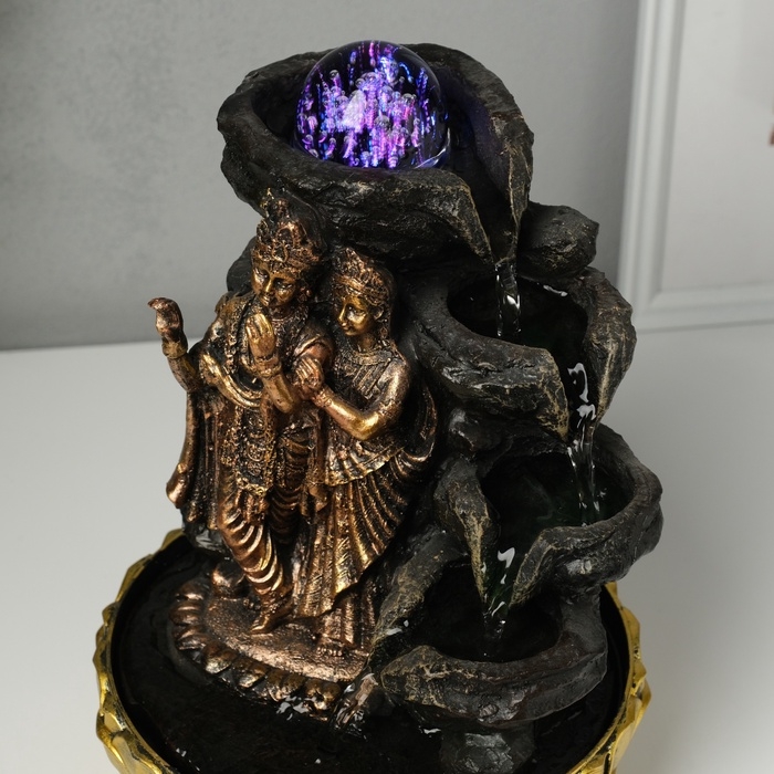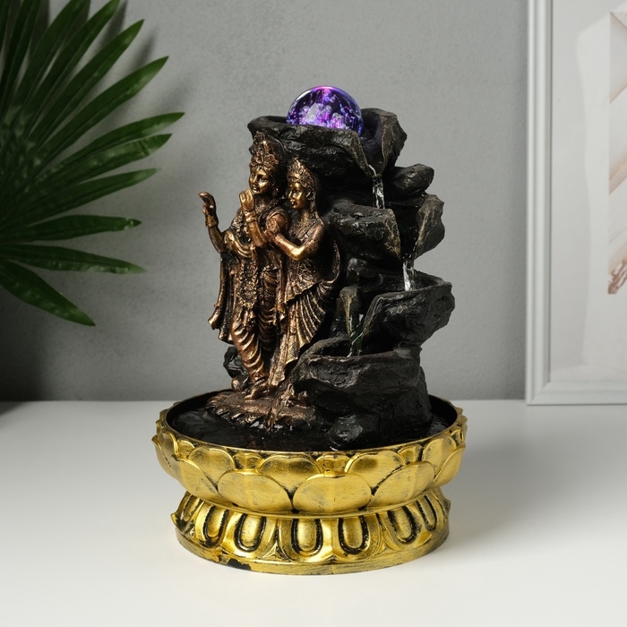 Фонтан настольный от сети, подсветка "Радха и Кришна у водопада" бронза 20,5х20,5х28 см