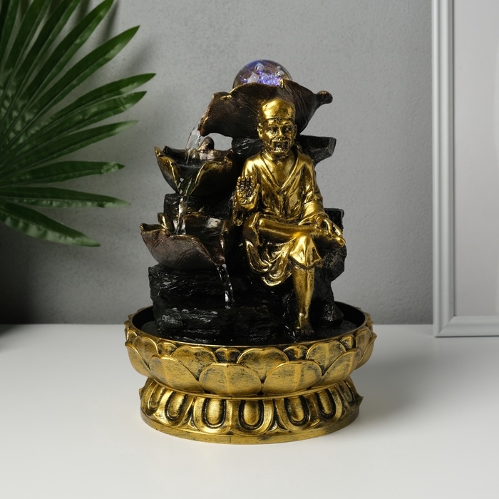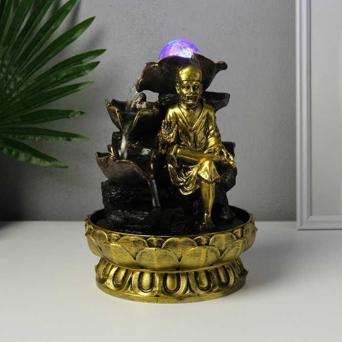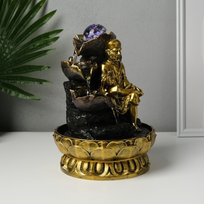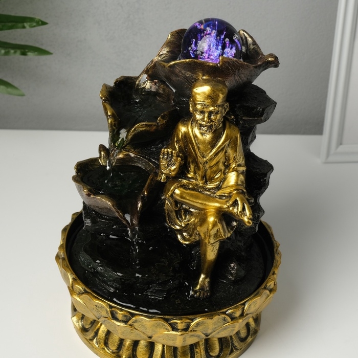 Фонтан настольный от сети, подсветка "Старец у водных листьев" 20,5х20,5х26,5 см