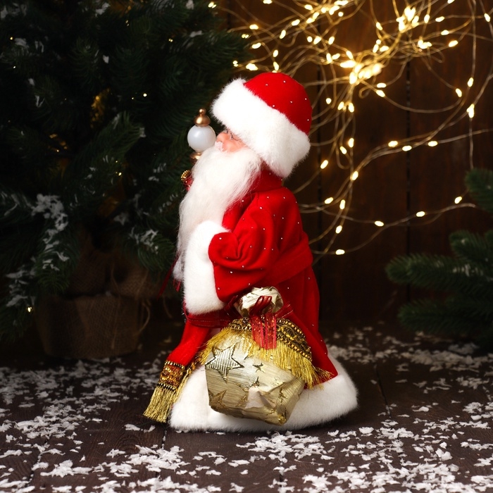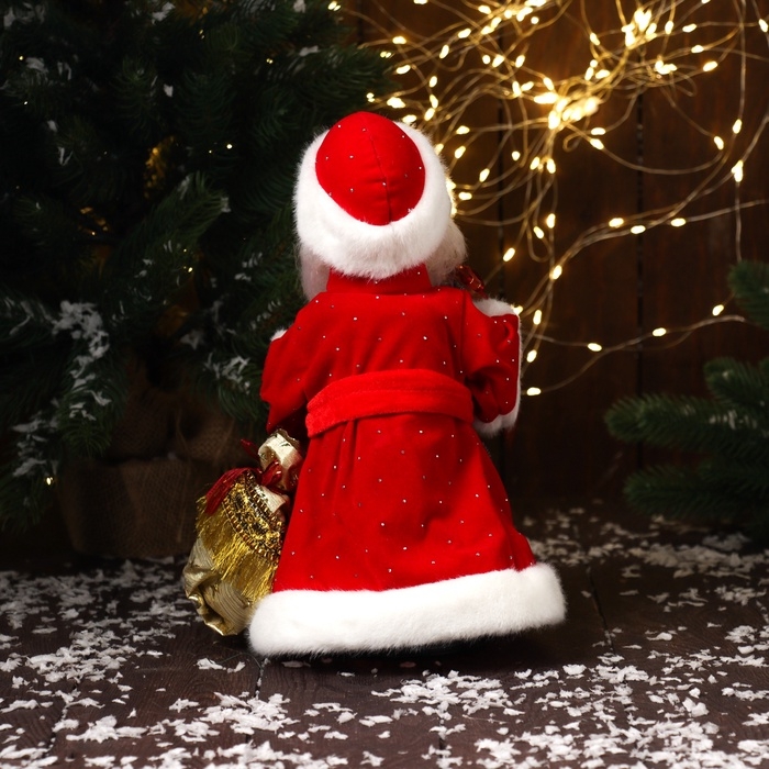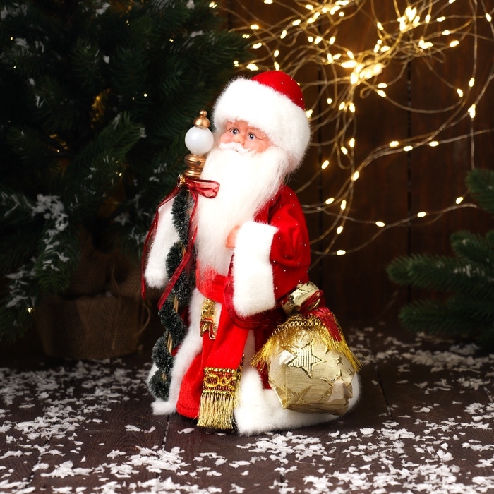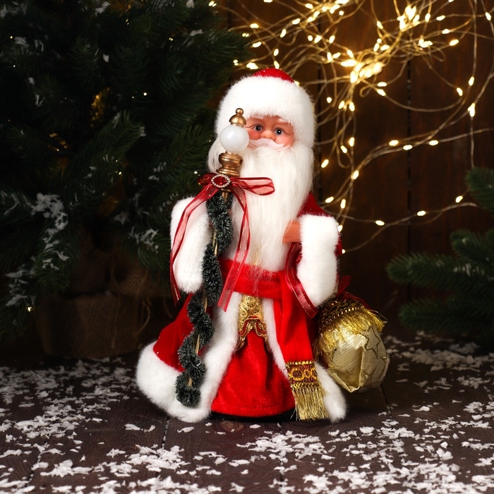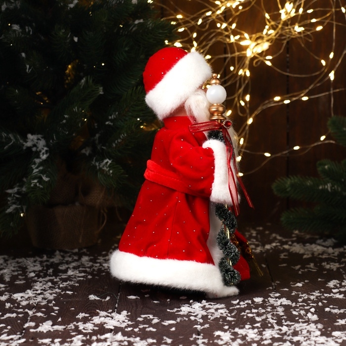 Дед Мороз "С украшенным посохом и мешком" двигается, с подсветкой, 30х16 см, красный