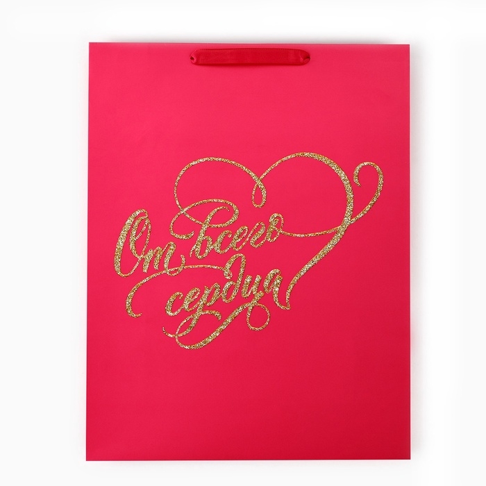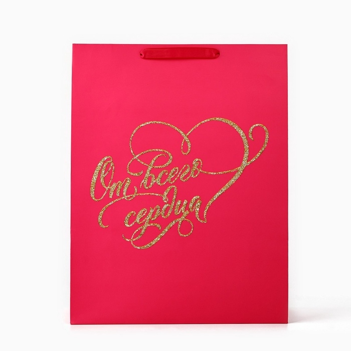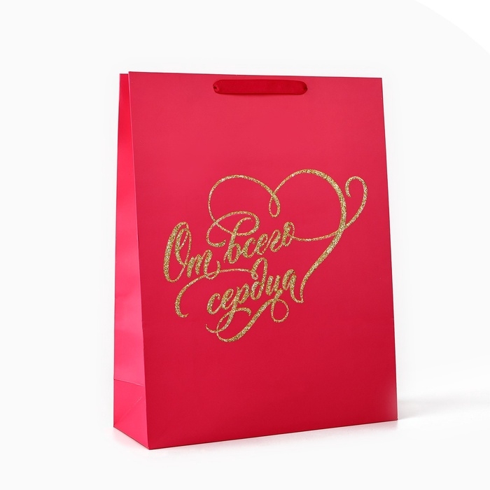 Пакет ламинированный вертикальный «От всего сердца», глиттер, L 31 х 40 х 11.5 см
