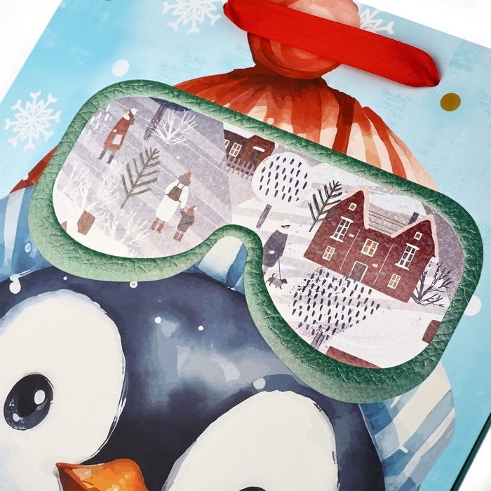 Пакет подарочный новогодний ламинированный «Пингвинёнок», конгрев, M 30 х 26 х 9 см, Новый год
