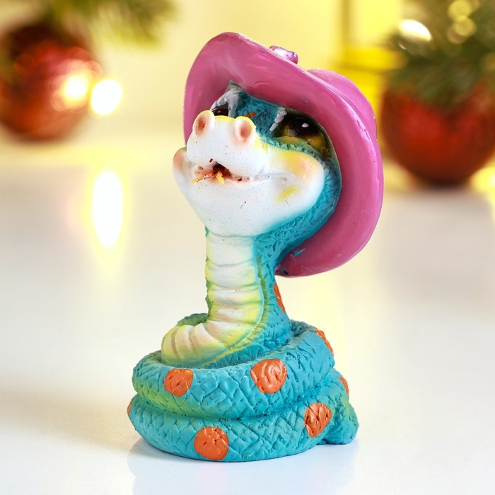 Новый год. Символ 2025. Фигура "Змейка в шляпке" 4х6х6см, цветная