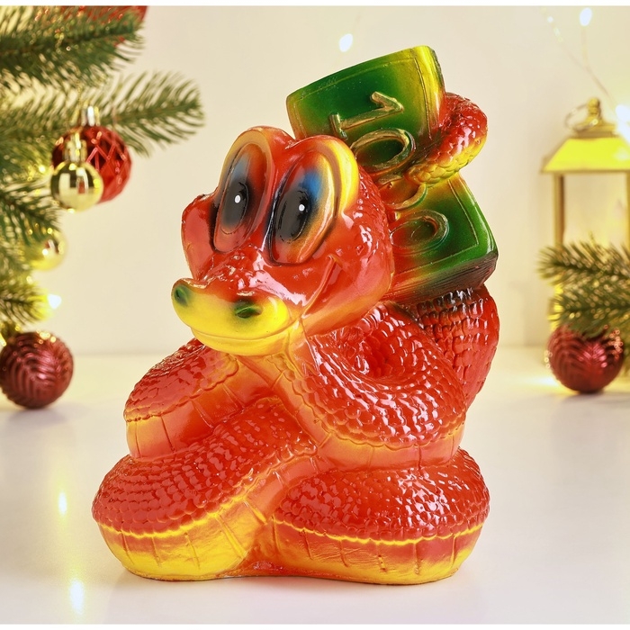 Новый год. Символ 2025. Копилка "Змея с купюрой" 20х16см, красная