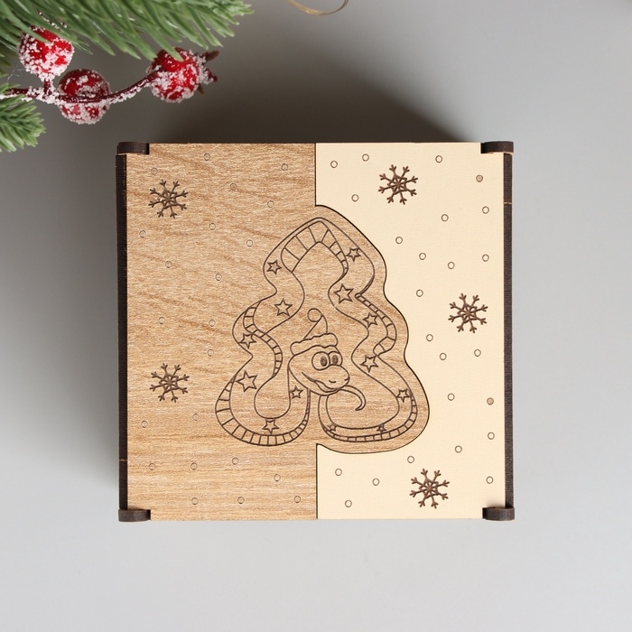 Новогодняя шкатулка комбинированная "Змейка-ёлка" 10,5х10х7 см