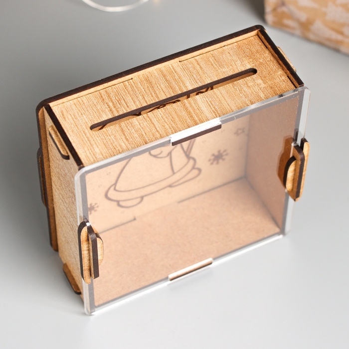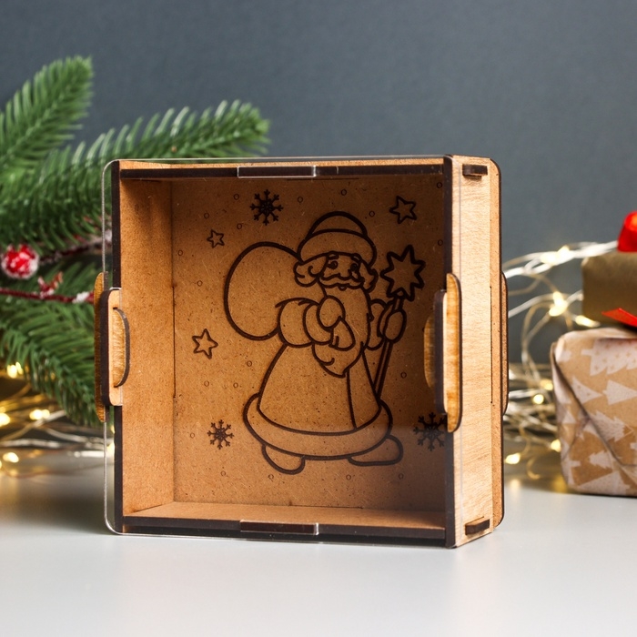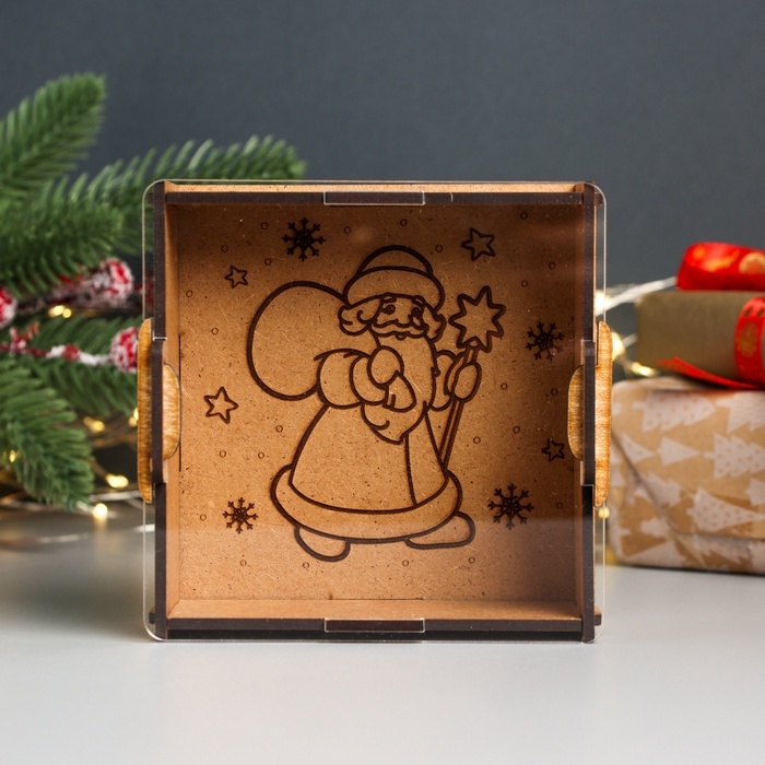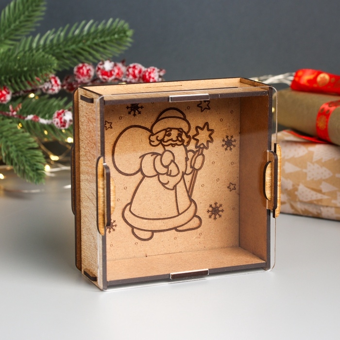 Новогодняя копилка с акрилом "Дед Мороз с мешком" 12х12х4 см