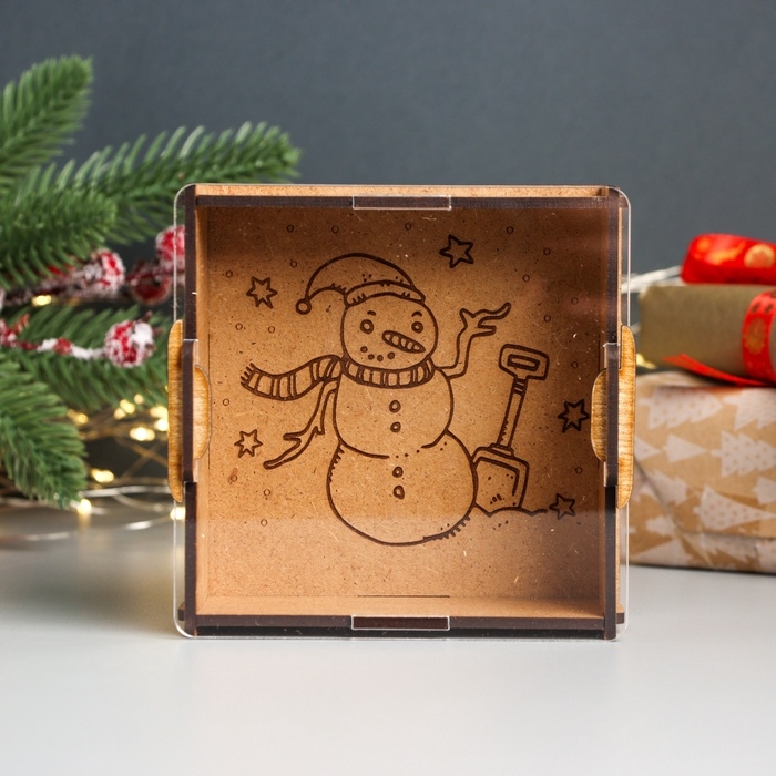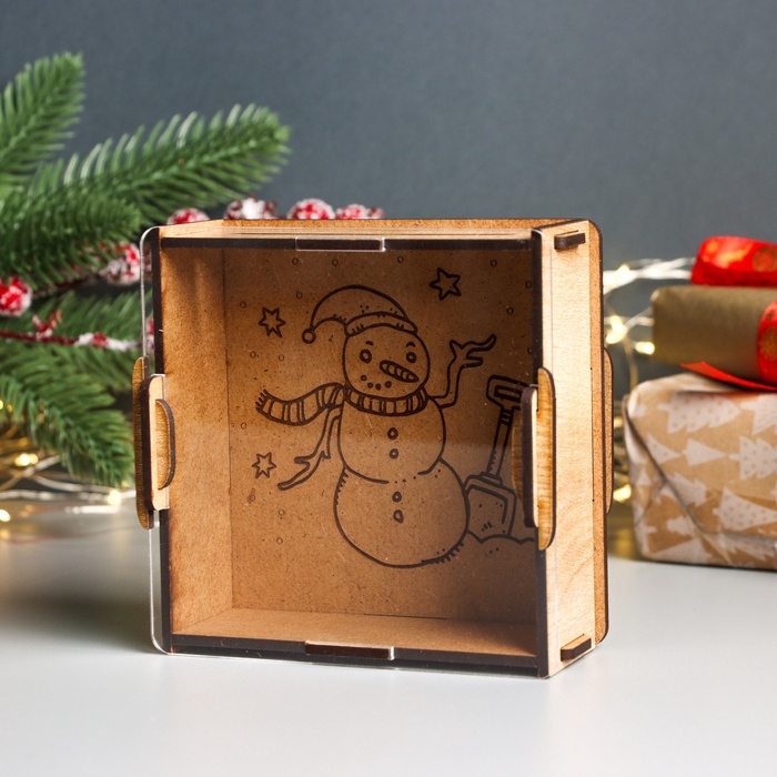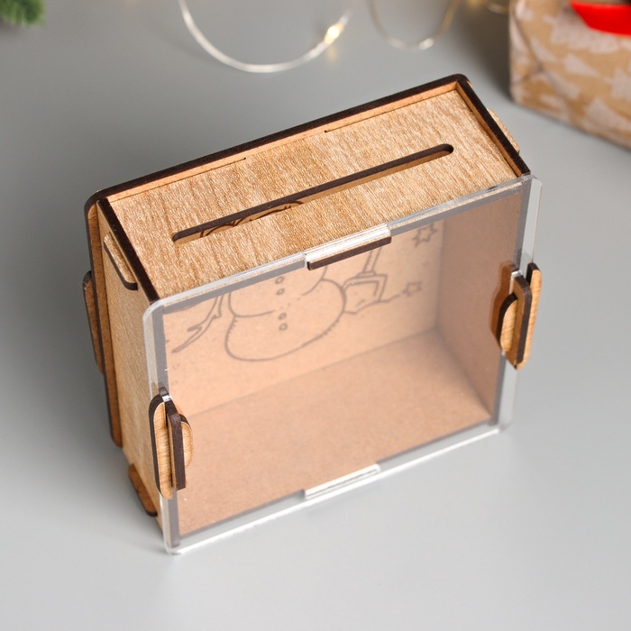 Новогодняя копилка с акрилом "Снеговик" 12х12х4 см