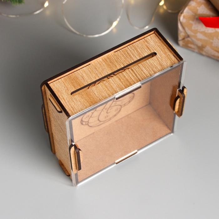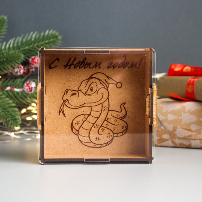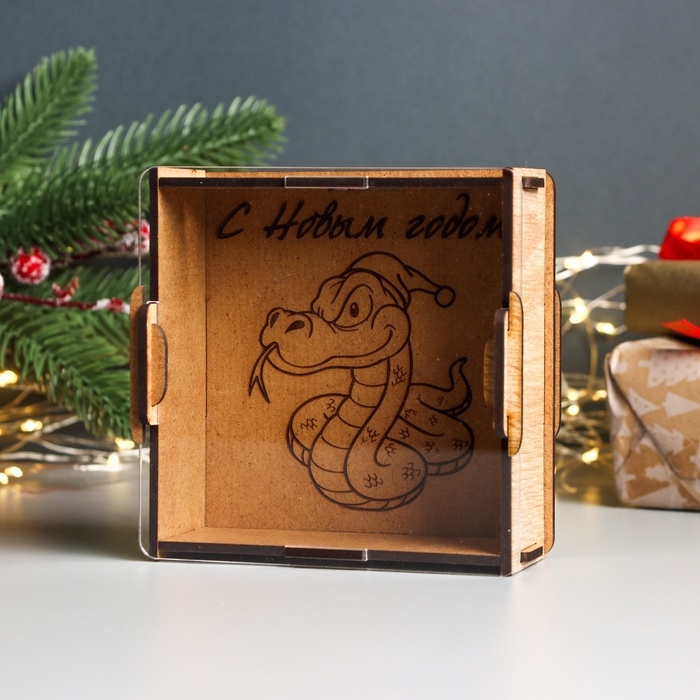 Новогодняя копилка с акрилом "Змея в колпаке" 12х12х4 см