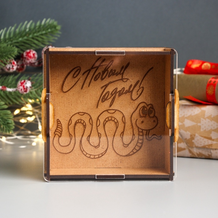 Новогодняя копилка с акрилом "Змея. С Новым годом" 12х12х4 см
