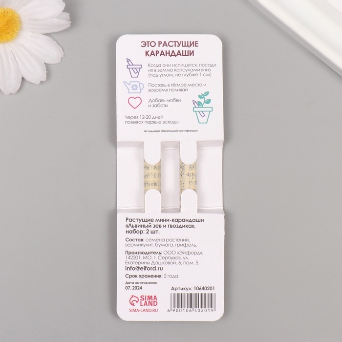 Растущие подарочные карандаши mini "Львиный зев + гвоздика" набор 2 шт.