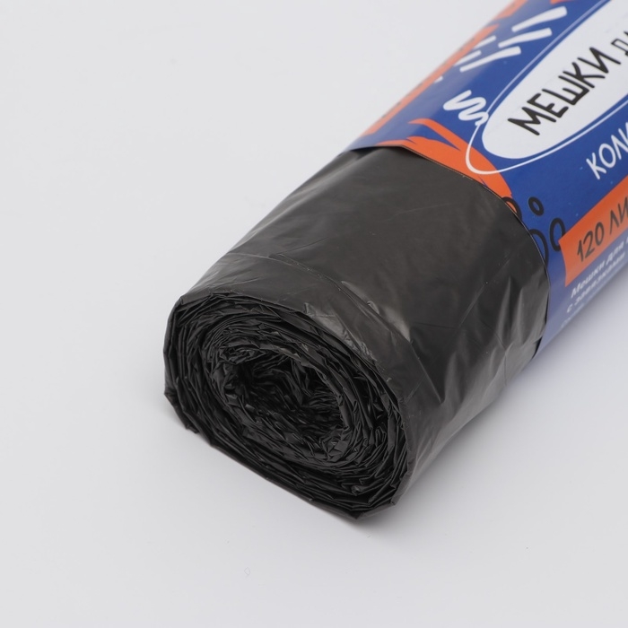 Мешки для мусора в рулоне "UpakLand" с завязками 120 л 25 мкм черные 10 шт