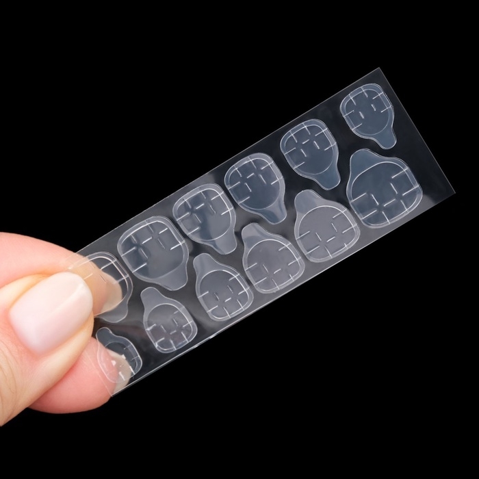 - Легкость в использовании: благодаря клеевым пластинам, вы сможете зафиксировать ногти быстро и без специального клея.