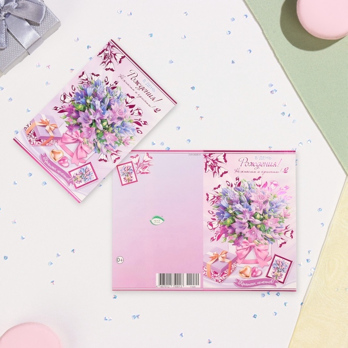 Открытка "В День Рождения!" конгрев, тиснение, букет, 12,5 х 19,4 см