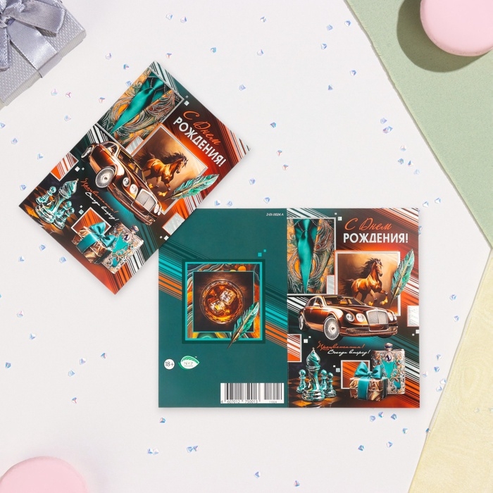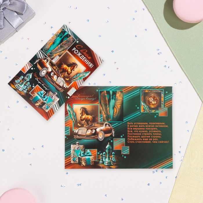 Открытка "С Днём Рождения!" конгрев, тиснение, конь, 12,5 х 19,4 см