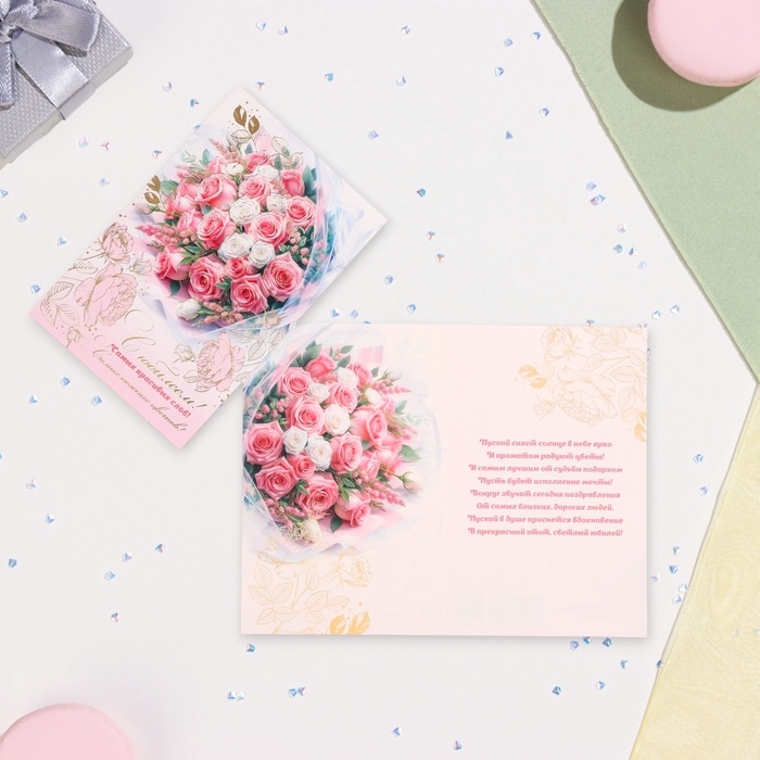 Открытка "С Юбилеем!" конгрев, тиснение, букет, 12,5 х 19,4 см