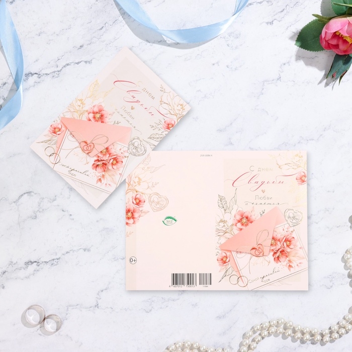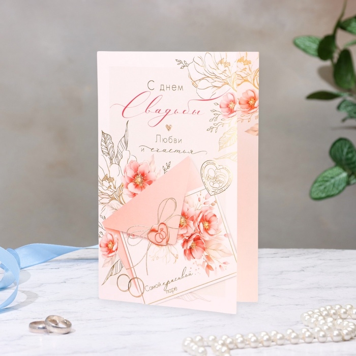 Открытка "С Днём Свадьбы!" конгрев, тиснение, конверт, 12,5 х 19,4 см