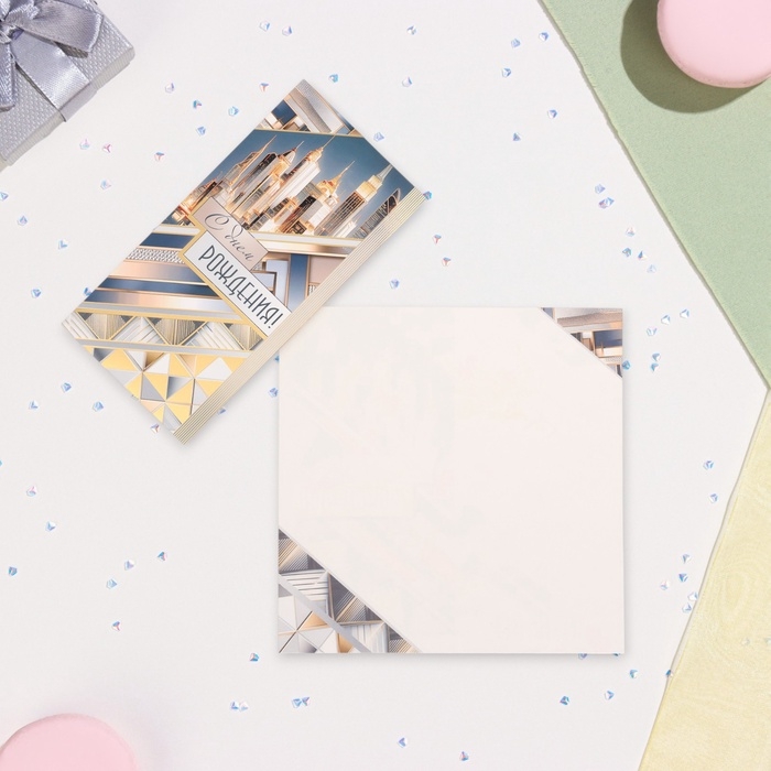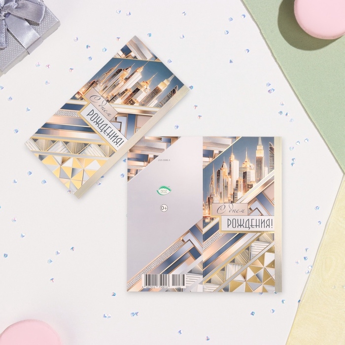 Открытка-евро "С Днём Рождения!" конгрев, тиснение, город, 10,5 х 21,5 см