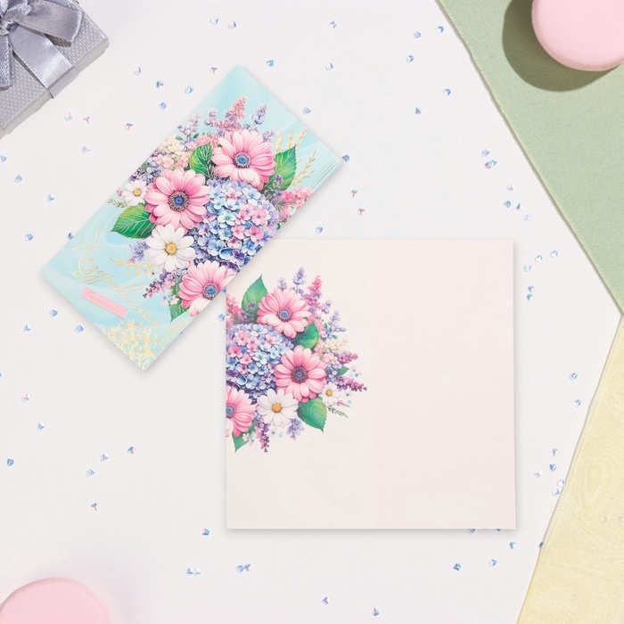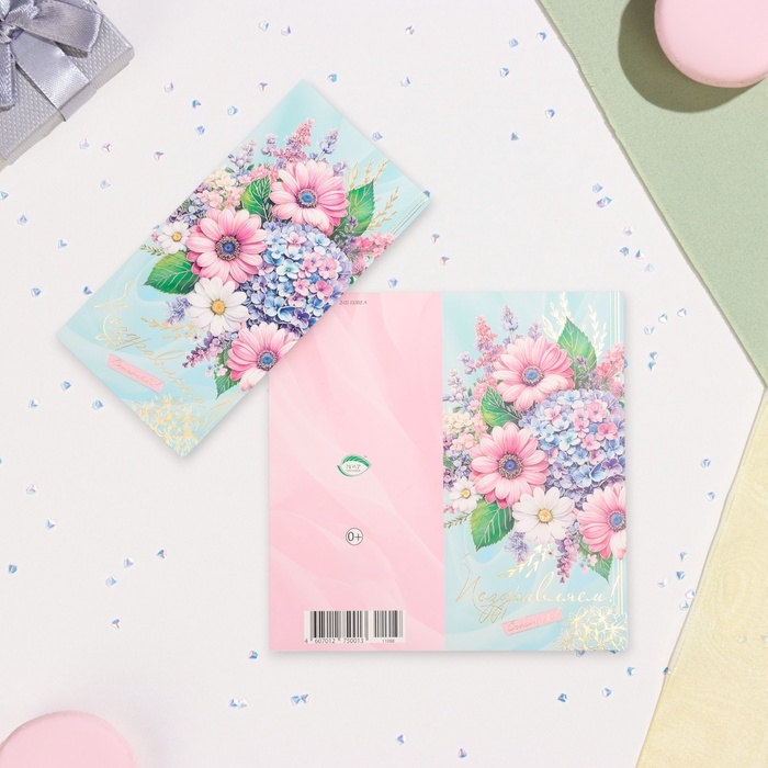 Открытка-евро "Поздравляем!" конгрев, тиснение, гортензия, 10,5 х 21,5 см