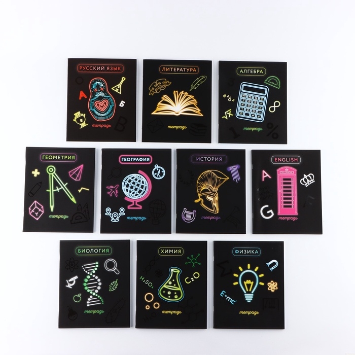 Набор тетрадей 48 листов, 10 предметов, внутренний блок №1 МИКС «1 сентября: Неон» Софт тач лам, 3D лак