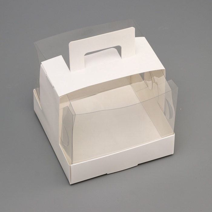 Коробка под бенто-торт с окном, белая, 14 х 14 х 8 см