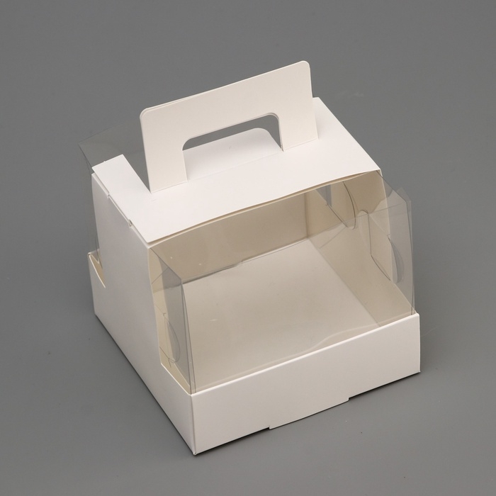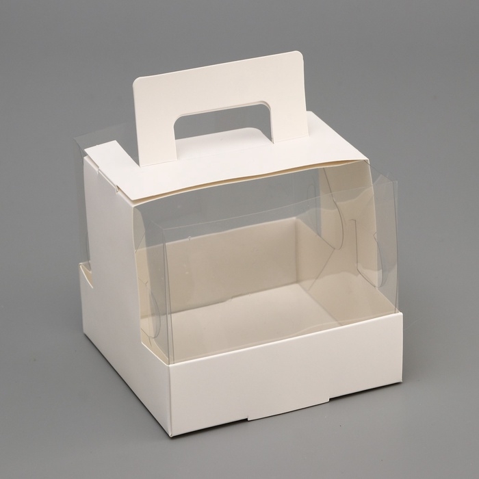 Коробка под бенто-торт с окном, белая, 14 х 14 х 8 см