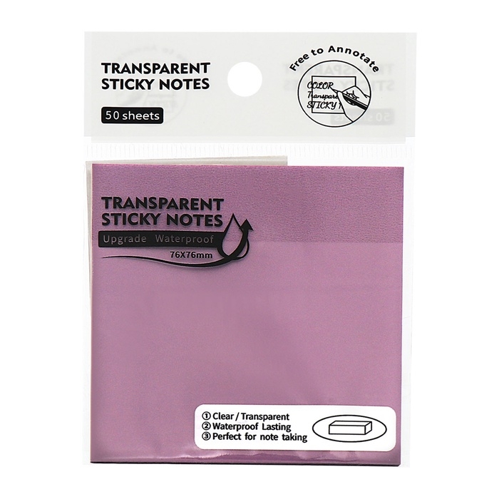 Блок с липким краем 76мм х 76мм 50л пластик прозрачный фиолетовый перламутр