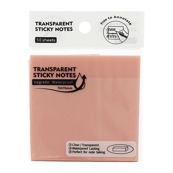 Блок с липким краем 76мм х 76мм 50л пластик прозрачный розовый перламутр