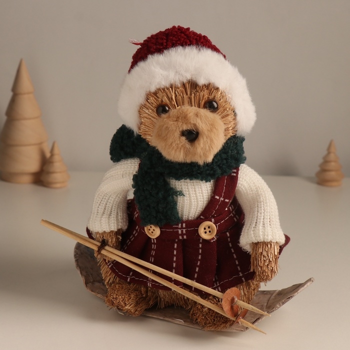 Декор "Мишка в зимнем сарафане на лыжах" 20х19х11,5 см