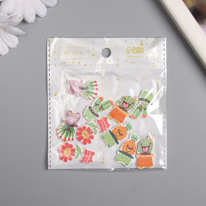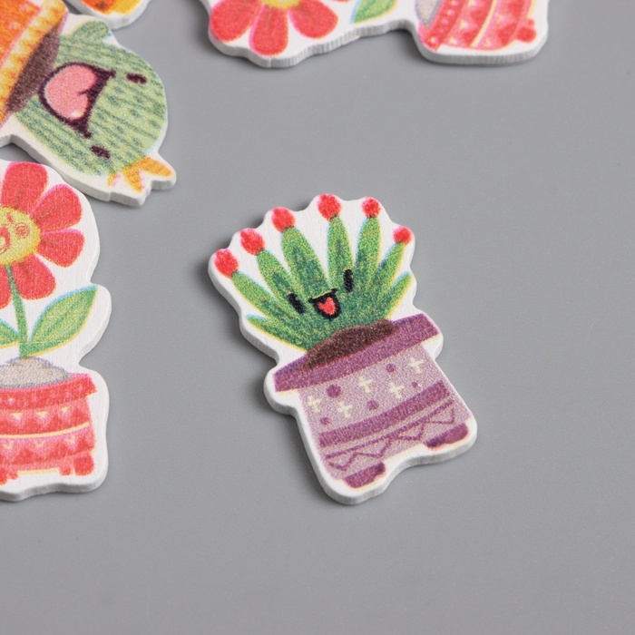 Декор для творчества дерево "Весёлые растения в горшочках" набор 10 шт 2,7х1,5 см