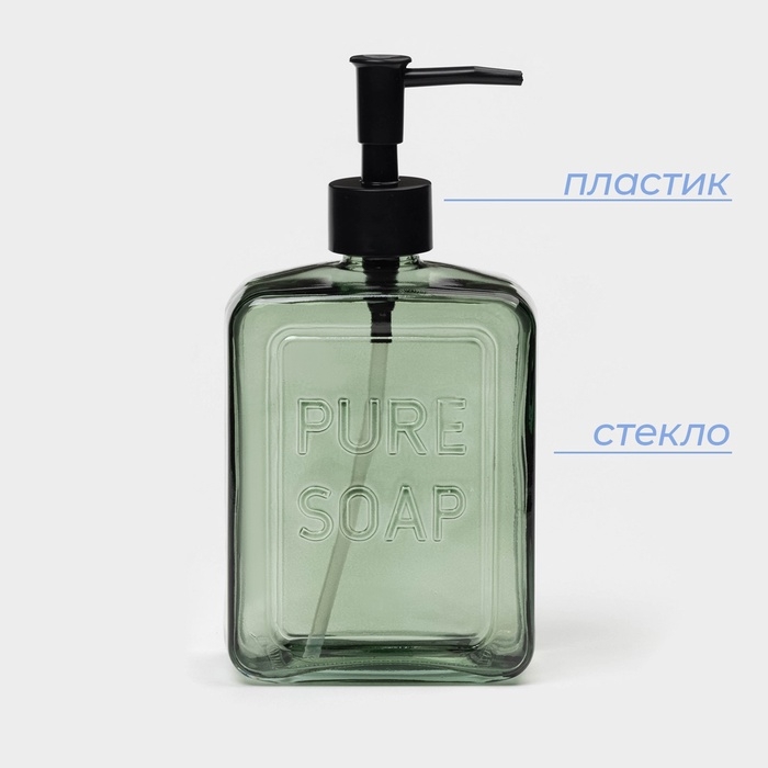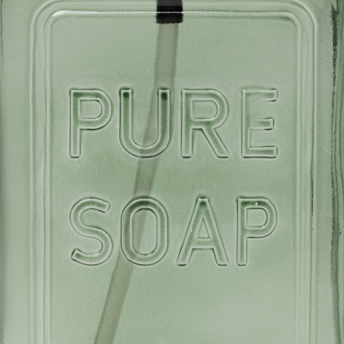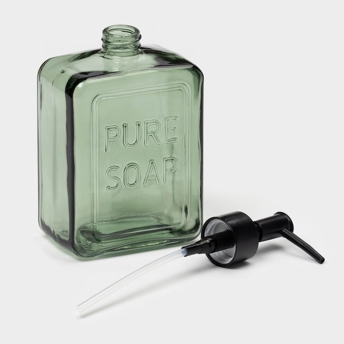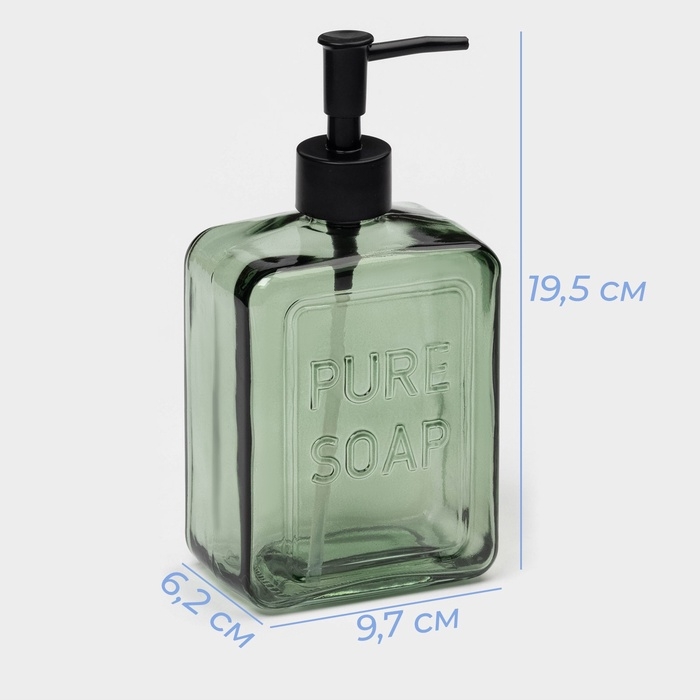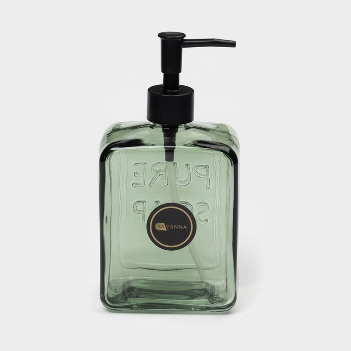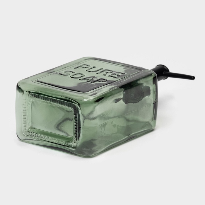 Дозатор для мыла стеклянный 580 мл, цвет прозрачный зеленый,помпа черная