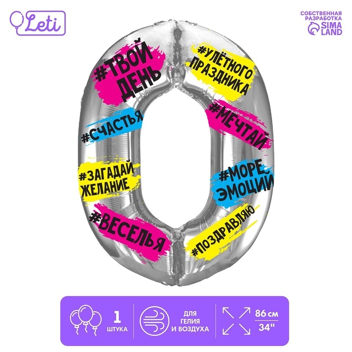 Шар фольгированный 34" "Цифра 0", хештеги