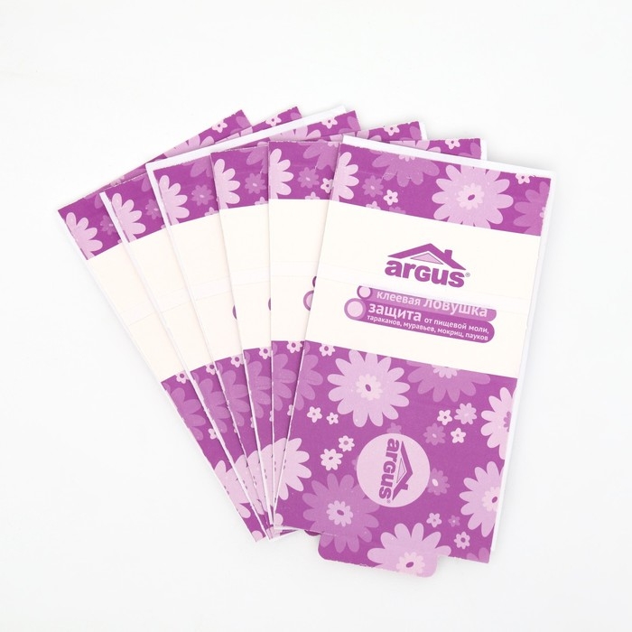 На природе и дома многие люди сталкиваются с клещами, клопами, москитами и другими опасными насекомыми, которые способны причинить массу вреда. Они переносят инфекцию, пьют вашу кровь и просто раздражают своим внешним видом.Вы устали бороться с ними? Клеевая ловушка Argus поможет вам справиться с пищевой молью, тараканами, муравьями и другими вредными насекомыми.Способ применения: Вскройте упаковку и извлеките из неё ловушку. Снимите защитную полоску на обратной стороне. Приклейте ловушку на стену внутри шкафа с пищевыми продуктами. Липкая сторона внутри неё содержит специальный феромон, который привлекает насекомых. Используйте ловушку в местах обитания насекомых: на кухне, в кладовых и в шкафах для хранения пищи. При необходимости её можно перевесить в другое место. Клеевая сторона ловушки действует в течение 90 суток с момента установки.Норма расхода составляет 4‒5 ловушек на помещение в 9‒12 м² или одна ловушка на шкаф с пищевыми запасами.Ловушку рекомендуется использовать в закрытых местах хранения при комнатной температуре. Избегайте её размещения на сквозняках. При появлении 1‒2 бабочек в ловушке следует внимательно осмотреть и перебрать пищевые запасы, крупы, макаронные изделия, сухофрукты и др. Заражённые продукты необходимо выбросить.Меры предосторожности: при попадании клея на кожу смойте его тампоном, смоченном в растительном масле. Храните отдельно от лекарственных средств в прохладном и сухом месте, недоступном для детей и домашних животных. Состав: Вкусоароматическая приманка, Консервант, Функциональные добавки