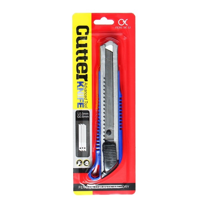 Нож канцелярский, лезвие 9 мм, корпус пластик, фиксатор, блистер