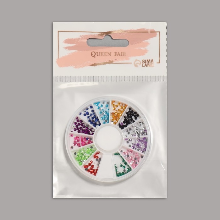 Стразы для декора ногтей, 12 ячеек, 2 мм, разноцветные