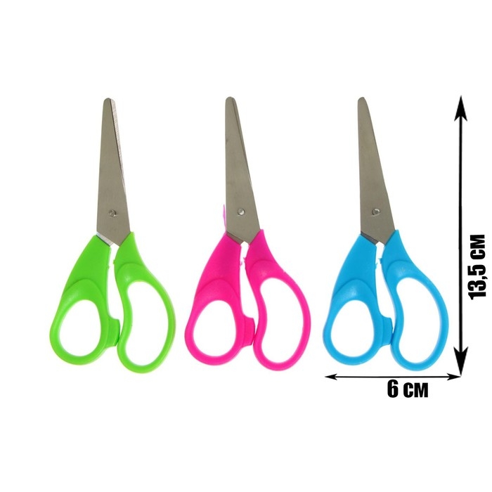 Ножницы канцелярские 13.5 см, пластиковые ручки, закругленные концы, блистер, корпус МИКС